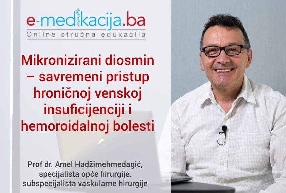 Na platformi E-medikacija.ba je dostupna nova online edukacija namijenjena ljekarima: „Mikronizirani diosmin – savremeni pristup hroničnoj venskoj insuficijenciji i hemoroidalnoj bolesti“, koju drži prof. dr. Amel Hadžimehmedagić, specijalista opće hirurgije i subspecijalista vaskularne hirurgije, UKC Sarajevo.